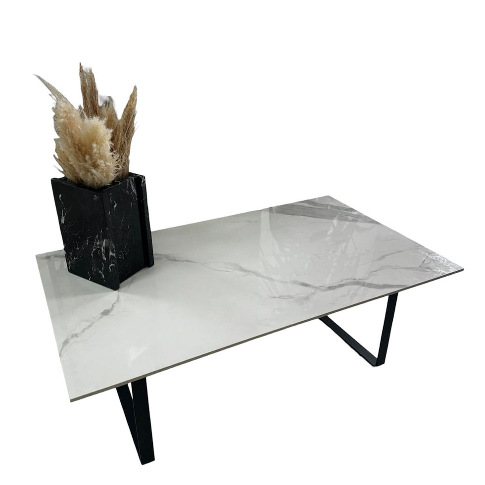 Elegante e contemporaneo, questo tavolino in gres effetto marmo statuario rappresenta la sintesi perfetta tra design e funzionalità.